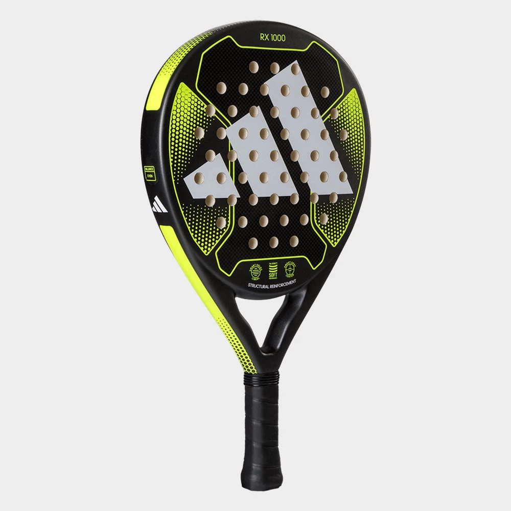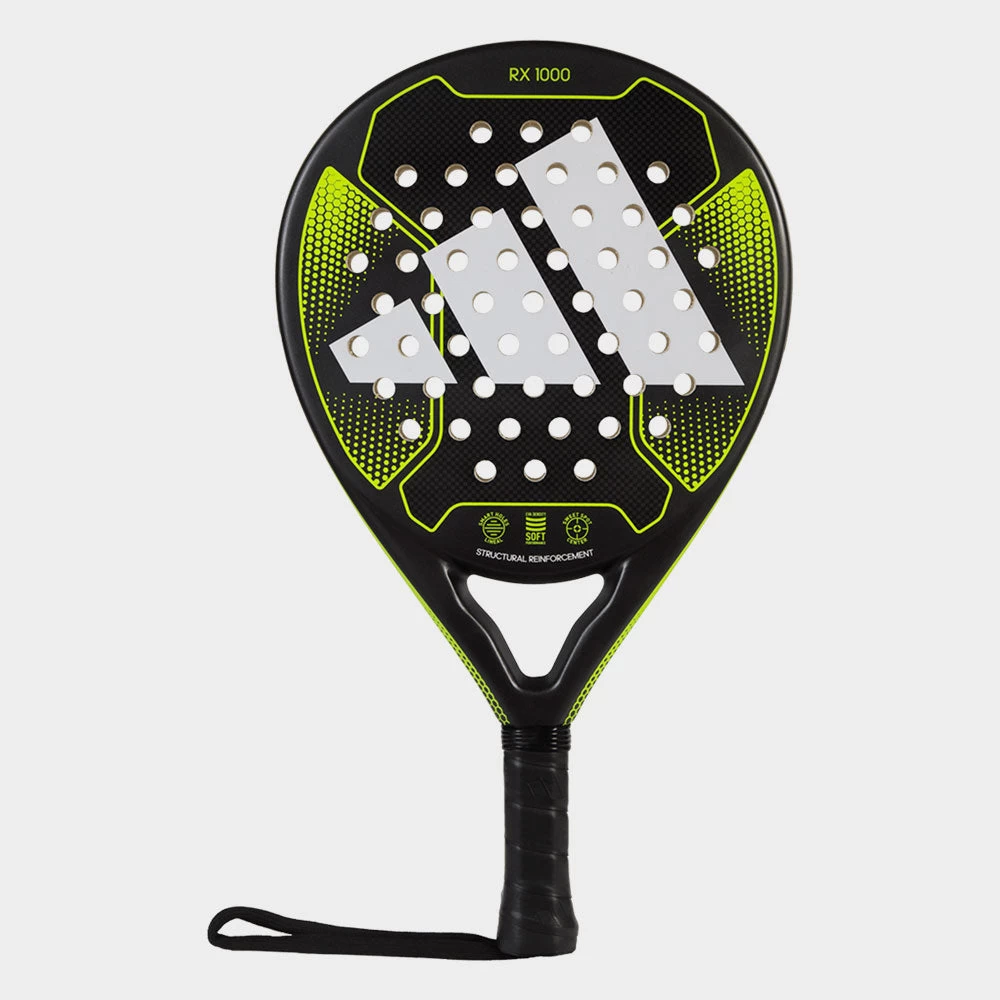 Support the intensity of your playstyle with the adidas Rx 1000! This versatile padel racket is perfect for intermediate players who want to bring out their best in every match. Enjoy a phenomenal feel from the low-density SOFT PERFORMANCE EVA rubber and FIBERGLASS surface. STRUCTURAL REINFORCEMENT technology allows high torsion resistance to aggressive shots. When the adidas RX 1000 is in your hands, the advantage is on your side!