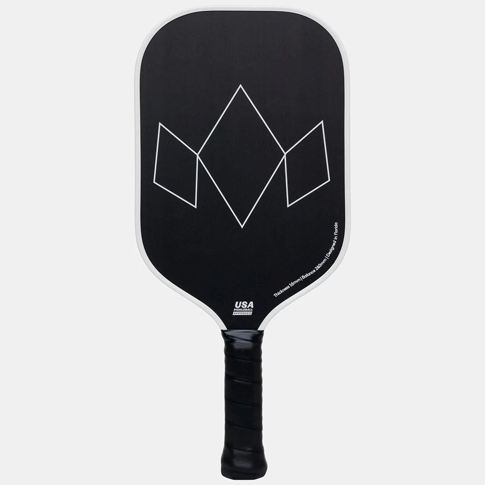 The Diadem Warrior Edge Ghost Limited Edition Pickleball Paddle is an aggressive take on the legendary Warrior series. At 16mm thick, this pickleball paddle is incredibly maneuverable, allowing quick resets and recoveries. Enjoy long-lasting spin and durability from the Etched Carbon fiber face. The single 8mm honeycomb core offers unmatched consistency to help you hit with pinpoint precision. From recreational to professional players, the Diadem Warrior Edge Ghost Limited Edition Pickleball Paddle unleashes your inner competitor!