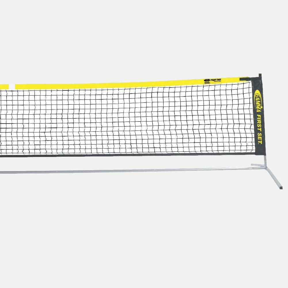 - 1 First Set Tennis Net: Portable, lightweight, quick and easy to set up. The perfect teaching aid for children. Can be used indoors or out. Net is 18 feet long by 33 inches high.