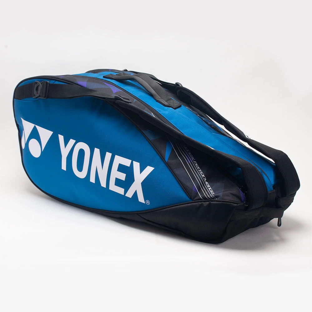 Carry your essentials to the court with the Yonex Pro Racquet 6 Pack Bag. Stylish and comfortable, this racquet bag features two large main compartments to hold up to six racquets or any extra gear you need for the match. The shoe pocket on the bottom of the bag allows you to keep your dirty or used items separate from everything else. Enjoy easy access to your valuables with the front accessory pocket. The padded adjustable back straps made from premium materials provide comfort and durability when you’re traveling to your next tournament.